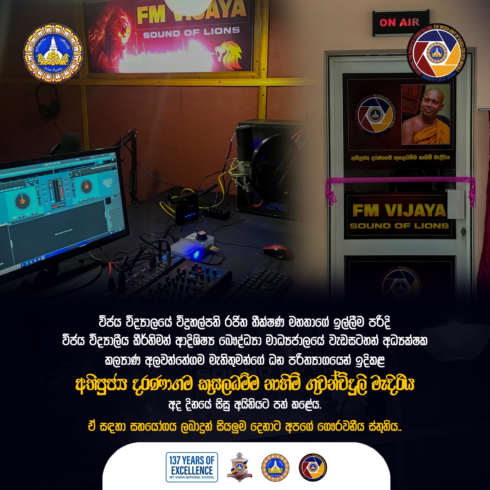 විජය විදු පියසට පියනගන දරුවන්ගේ ප්රතිඵල ප්රශස්ත මට්ටමකට සංවර්දනය කිරීම,විනය ගරුක දරුවන් ලෙස ඔවුන්ගේ පෞරුෂය ගොඩනැංවීම,විෂය හා විෂය සමගාමී ක්රියාකාරකම්වල දක්ෂතා ජාත්යන්තර තලයට ගෙනයාම අපගේ මෙහෙවර වන්නේය.